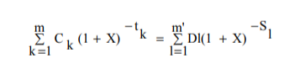 - tK – okres, wyrażony w latach lub ułamkach lat, między dniem pierwszej wypłaty a dniem każdej kolejnej wypłaty, zatem t1 = 0;